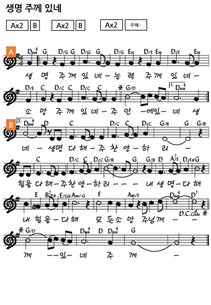 3) G 생명 주께 있네